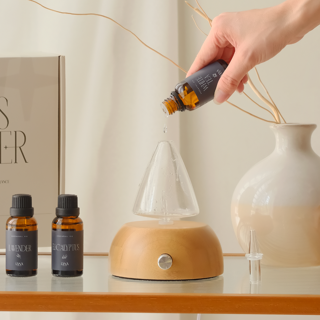 A waterless diffuser like the LANA Sleep Oasis uses cold air pressure technology to nebulize pure essential oils without water or heat. This preserves the oils' full therapeutic properties and eliminates contamination risks from mold or bacteria that can grow in traditional water-based diffusers, especially in Singapore's humid climate.